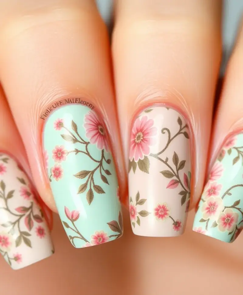 For a timeless appeal, consider vintage floral designs that bring a touch of nostalgia to your spring nails.