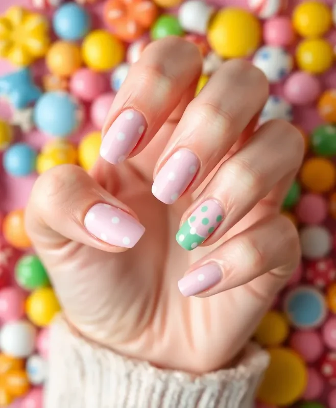 The mix of colours adds a vibrant energy to your nails, making them perfect for casual outings or fun spring events. Sweet candy pastels are all about joy and creativity, allowing you to express your unique style.